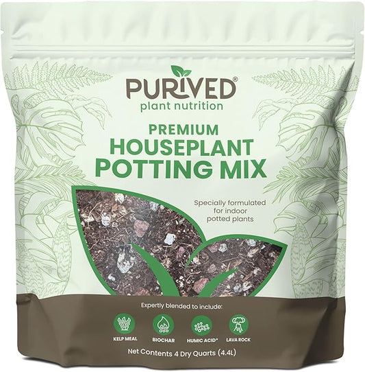 Purived Premium Houseplant Potting Mix | 4 Quarts | Ideal Soil Drainage & Moisture Retention for Indoor Potted Plants | with Kelp, Biochar, Lava Rock & Humic Acid | Made in USA