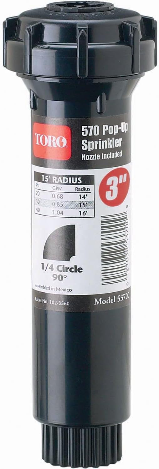 Toro 53815 3-Inch Pop-Up Fixed-Spray with Nozzle Sprinkler, 90-Degree, 15-Feet,Blacks