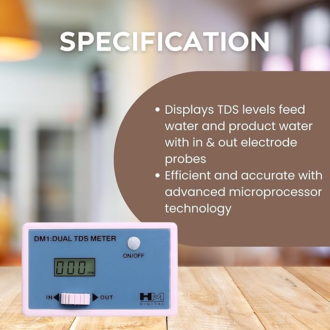 - The DM-1 helps you to measure the tap water coming in vs the purified water going out of your water filtration system at any time