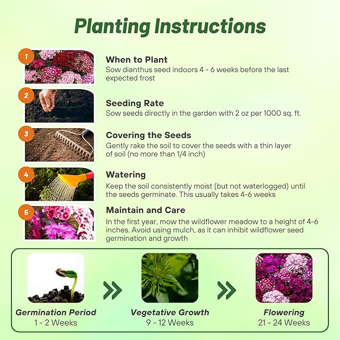 - ENJOY COLOR ALL SEASON: Our Sweet William flowers bloom from late spring to early summer, providing vibrant color for several weeks. These perennial flowers keep your garden lively throughout the warmer months. The extended bloom period makes them ideal for gardeners looking to add lasting beauty with wildflower seeds that carry through to the next season.