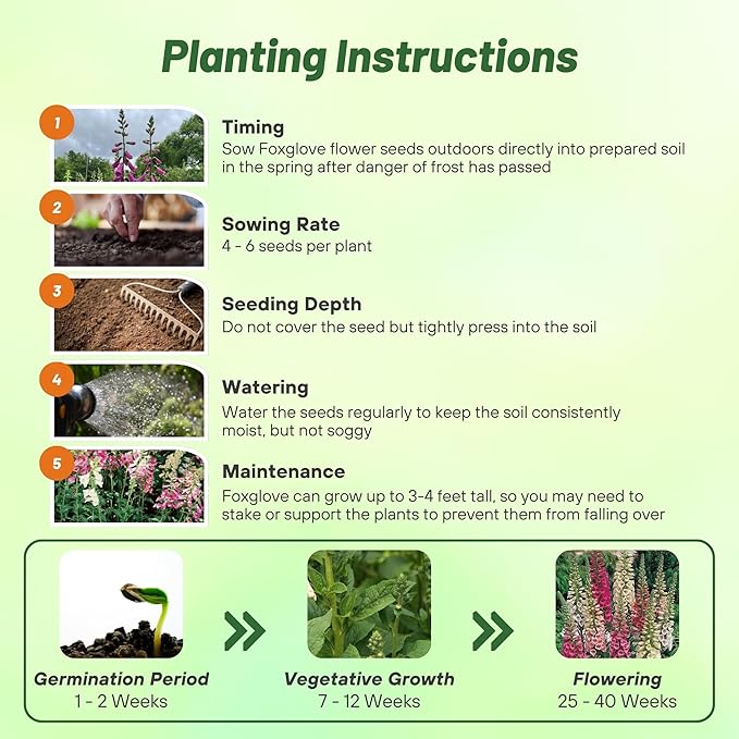 - WILDLIFE-DETERRING & LONG-LASTING IMPACT: These foxglove seeds offer beautiful blooms in their second year, creating a low-maintenance, vibrant garden while naturally deterring wildlife. Ideal for creating a long-lasting display, these perennial wildflower seeds add beauty to your landscape with minimal upkeep.