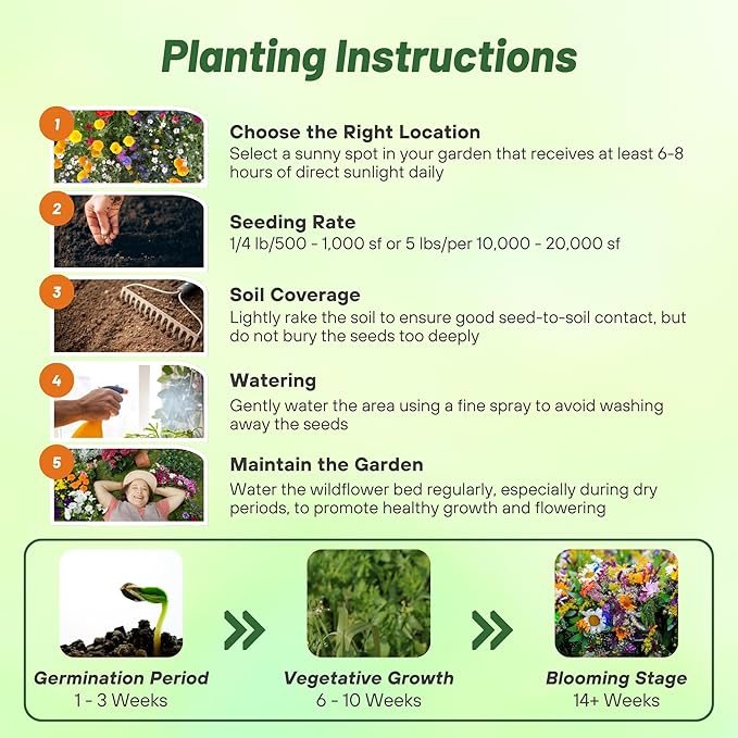 - VERSATILE PLANTING & ENHANCED AESTHETICS: Customize your garden’s look with flexible seeding rates, whether you prefer a scattered meadow or a dense, lush stand. This diverse wildflower mix adds depth, color, and texture to any landscape, creating a picturesque and tranquil outdoor space that enhances the aesthetic appeal of your home.