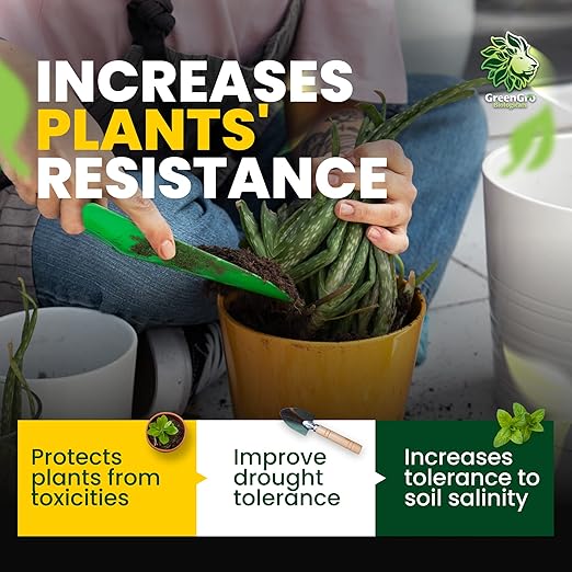 - INCREASES PLANT TOLERANCE: Protects plants from micronutrient toxicities; Makes penetration more difficult, Increases plant establishment and survival at seeding or transplanting; Increases tolerance to soil salinity; Improves drought tolerance, allowing watering reduction