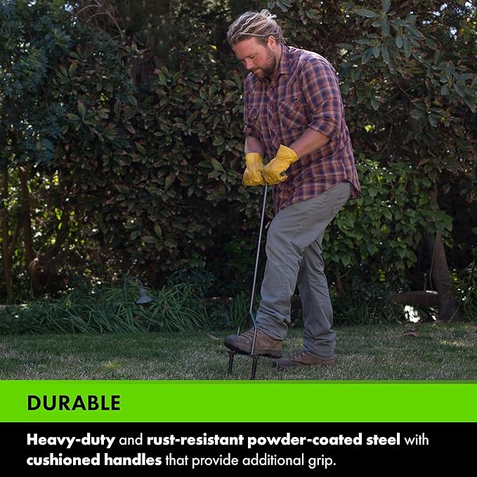 - DURABLE: The Yard Butler lawn aerator tool was built to last with durable steel construction. The powder-coated steel is heavy-duty and rust-resistant. Cushioned handles provide additional grip. Yard Butler Pro Tools are designed to last a lifetime.