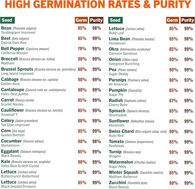 - Non-GMO and Heirloom Quality: All garden seeds are non-GMO and heirloom, ensuring natural growth and the ability to save seeds for future planting, promoting sustainability in your gardening practices