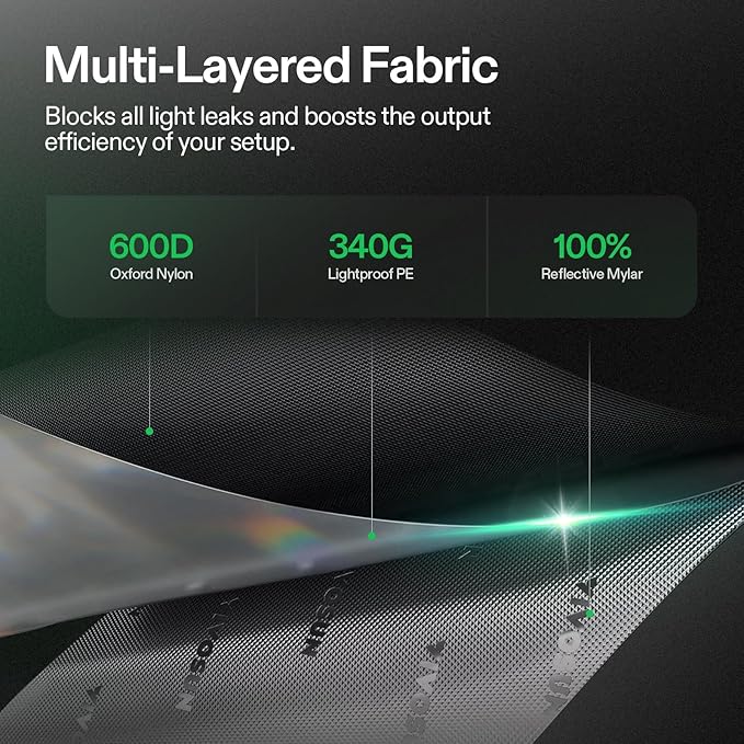 - Keeps All Light Inside: The Vivosun Hydroponic Mylar Grow Tent is made of high-quality 600D Oxford canvas that is lined with reinforced PE layer and 100%-reflective mylar walls, which can effectively block all light from leaking and boost the output efficiency of your setup; The zipper part has also upgraded with the black inner lining to prevent light into the tent; There is no need for additional flaps or tape, you can just zip up to create a lightproof seal environment