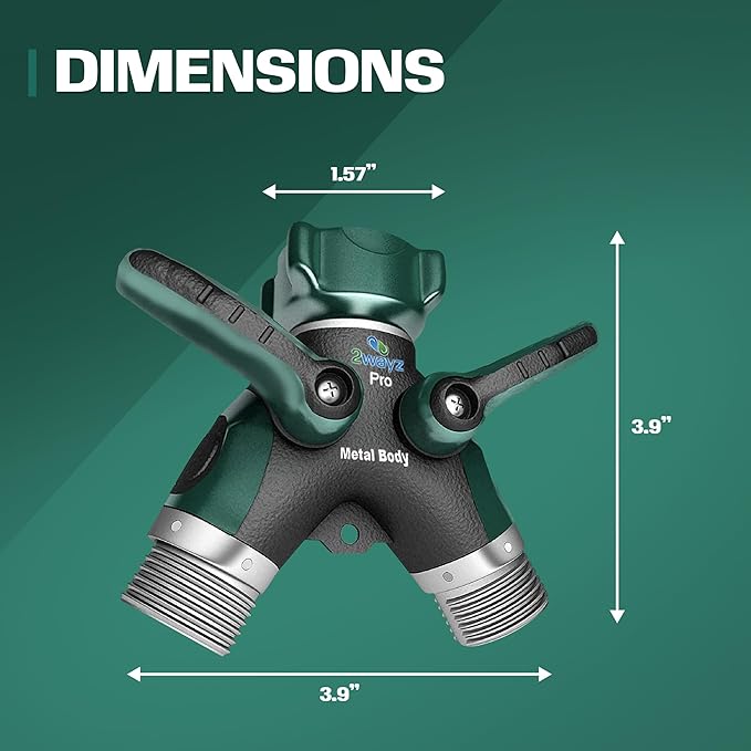 2WAYZ Hose Splitter 2 Way Heavy Duty - Outdoor Faucet and Garden Hose Splitter - Durable Water Spigot Splitter Y Adapter - All-Metal Water Hose Connector with Shut-Off Valve - 4 x 4 x 1.5 Inches