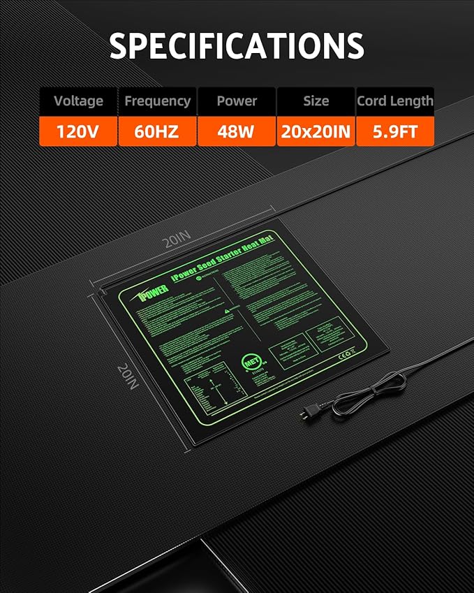 - Package include: 1-pack iPower 20" x 20" seedling heat mat
