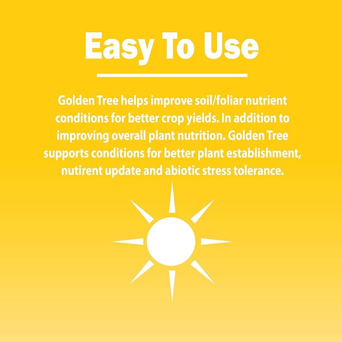 - FOR ANY PLANT: Our Golden Tree formula is an all-in-one additive for any plant, tree, flower or bush. When used with a well-balanced fertilizer, Golden Tree helps improve soil/foliar nutrient conditions for better crop yields. In addition to improving overall plant nutrition, Golden Tree supports conditions for better plant establishment, nutrient uptake and abiotic stress tolerance.