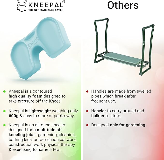 - LIGHTWEIGHT, PORTABLE DESIGN: Kneepal weighs less than 1.2lb making it easy and hassle-free to carry around making it popular as garden gifts; knee pads for women or knee pads for men.