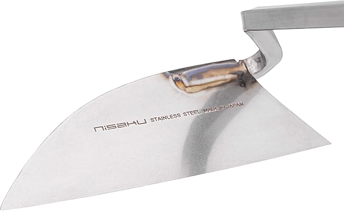 - The blade is made with Japanese Stainless Steel. The 4-Inch Straight Blade and 4.5-Inch weather-resistant black lacquered handle make it very easy to use and handle. Beginner and Professional gardeners love the ease of use of the Kubinaga Gama Handheld Garden Weeder-Scraper-Hoe.