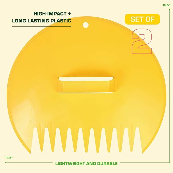 Rugg Original Leaf Scoops, Large Size Hand Rake Claws for Debris & Yard Waste Pick Up, Yellow, (One Pair)