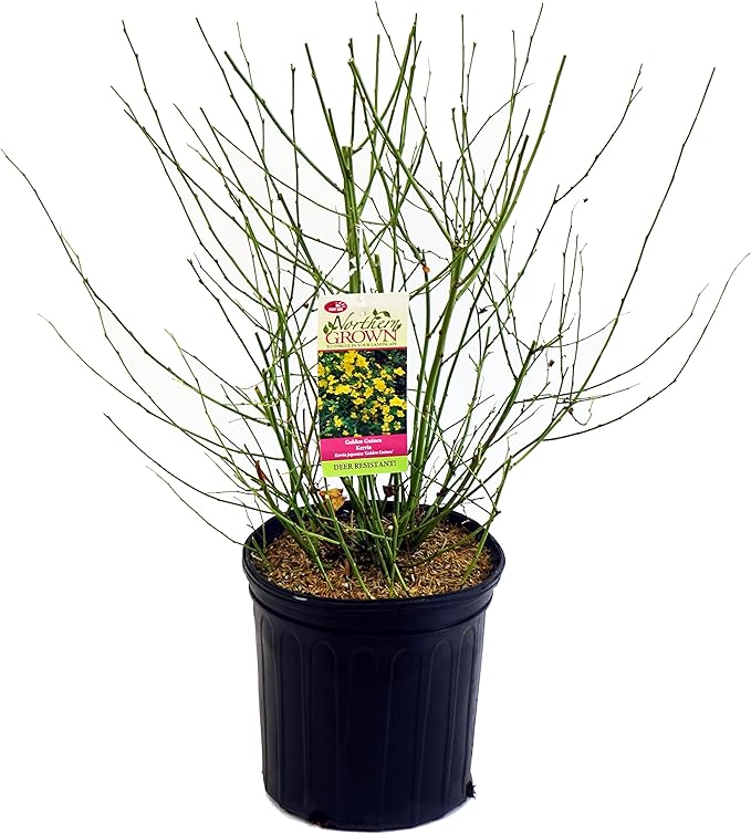 Kerria japonica 'Golden Guinea' (Japanese Kerria) Shrub, yellow flowers, #2 - Size Container