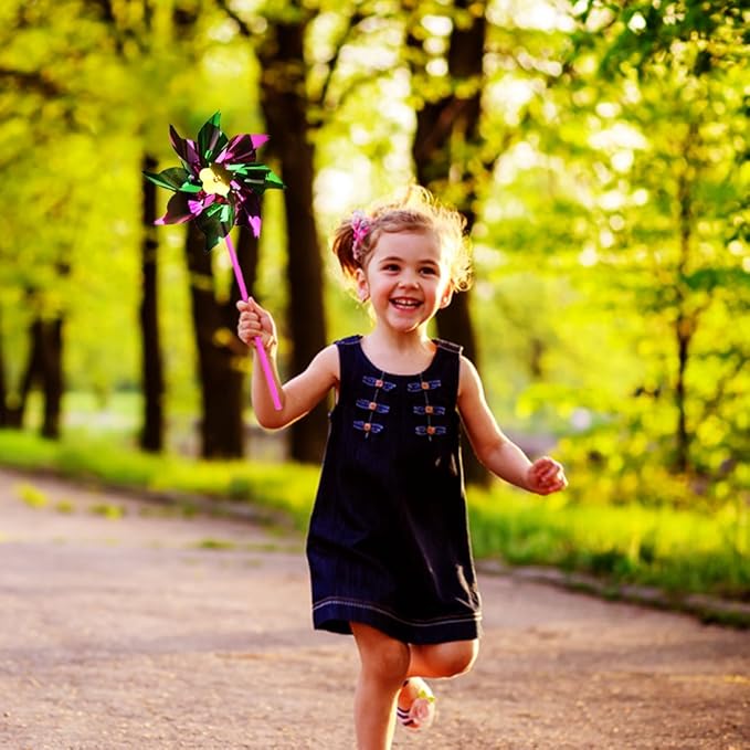 - COLORFUL PINWHEEL -- The package comes with multicolor pinwheels made of durable plastic material, one of the most entertaining game to play during a windy day for young children.