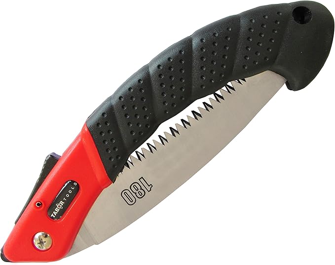 TABOR TOOLS Folding Saw with 8 Inch Curved Blade and Rugged Grip Handle, Hand Saw for Pruning Trees, Trimming Branches, Camping, Clearing Forest Trails. TTS25A. (Curved Blade 8 Inch)