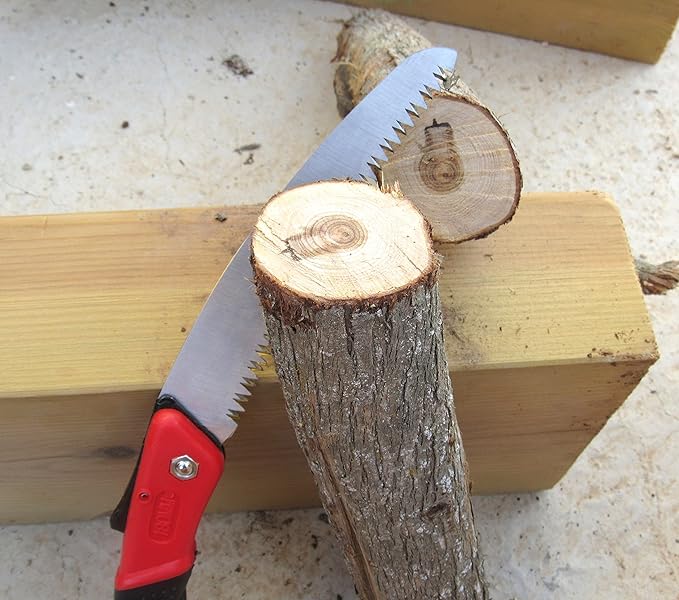 - OUTDOOR & SURVIVAL: Throw this lightweight saw in your backpack or toolbox. This tool will be a great help in the bush for trail maintenance or while camping or constructing a shelter, and as a bonus, you can have a campfire going in no time! Keep it in your car for EMERGENCY SITUATIONS: the red handle makes it easy to find. When folded and not in use, the compact saw easily fits in your pocket. Then simply retrieve it from the pocket, flip the lock, extend the blade and lock it open.