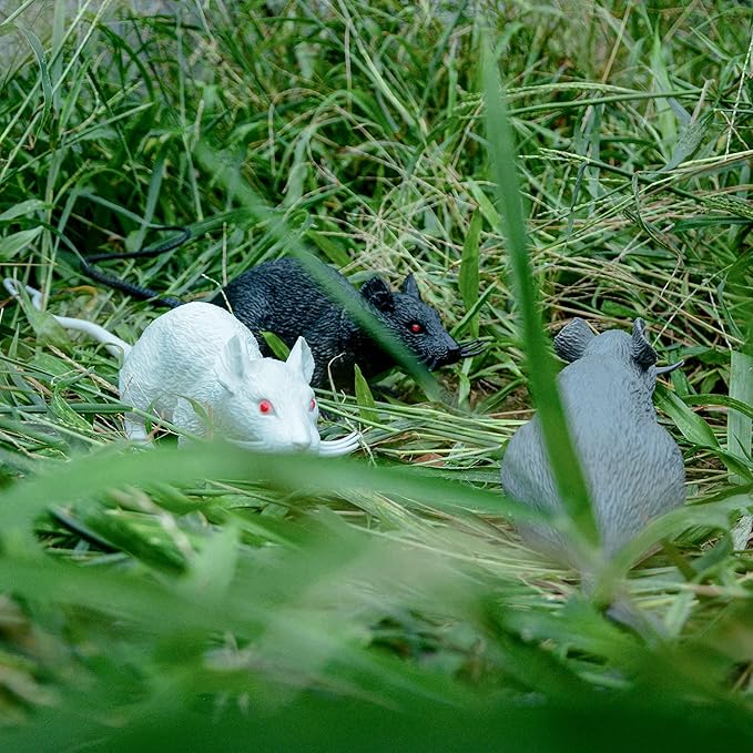XONOR Halloween DÃcor Set of 3 Realistic Looking Spooky Mice Rats, Super Large Plastic Mouce for Best Halloween Decoration, 3 Colors (White & Black & Grey)