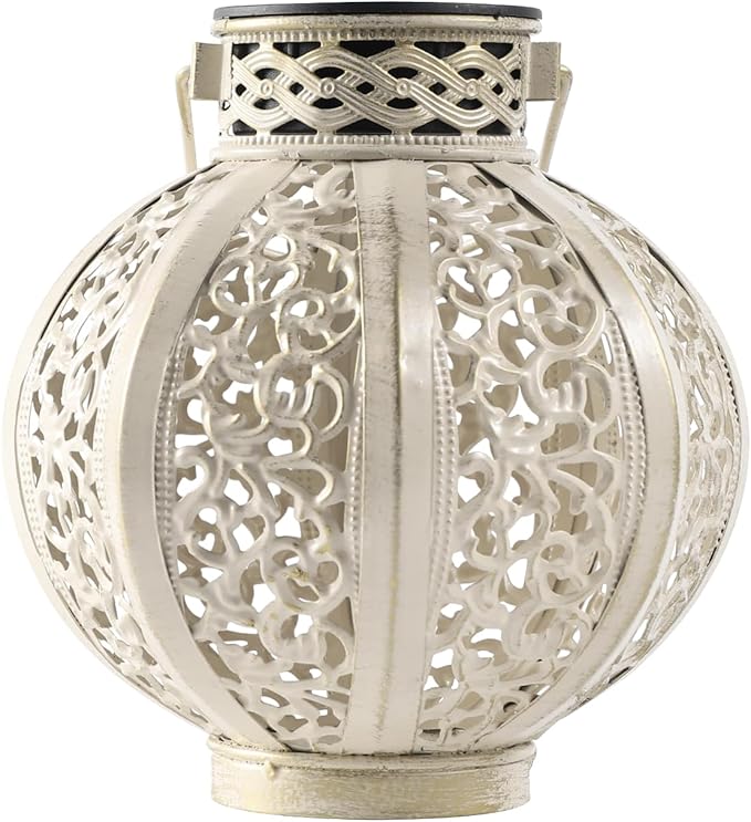 - Made of iron (white finish) and plastic, it is a decorative light so the light is subtle and soft, the ambient glow fills the area with calmness and beauty, rustic looking style hanging solar lights can be as a fine landscape accessory. 2 Pack, the warm white LED is 6 lumens for added brightness. Measures: 6 x 6 x 6.7 inches. --Notice: The RUSTY surface of the lantern is deliberately designed as an ancient and vintage effect, NOT A QUALITY DEFECT.