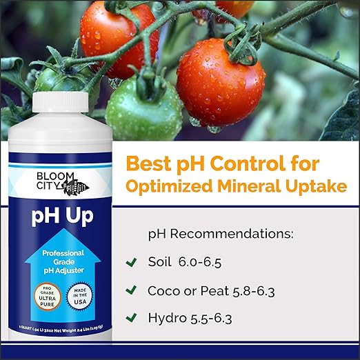 - STRONG BASE FOR SUPERIOR PH STABILITY: Bloom City pH Up is a strong pH adjusting base that helps the home grower maintain optimal pH levels. Formulated with the highest grade pH adjusting formula