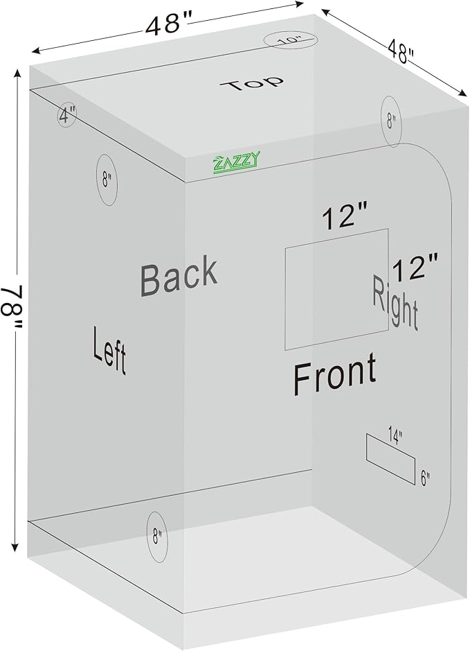 - 【Top-Quality Materials and Sturdy Frame】Zazzy plant grow tent made of superior quality reflective 600D mylar and double stitched to ensures the light blocking. Heavy duty all steel poles which are rated to handle at least 110 lbs. The frame is specially finished to ensure smooth installation and safe handling.