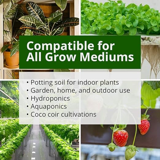 - COMPATIBLE IN ALL GROW MEDIUMS: This formula makes for an excellent indoor plant fertilizer suitable for all grow mediums. The usage rate is between 2.5-5ml/gallon (5ml is approx. 1 teaspoon) throughout the entire grow cycle.