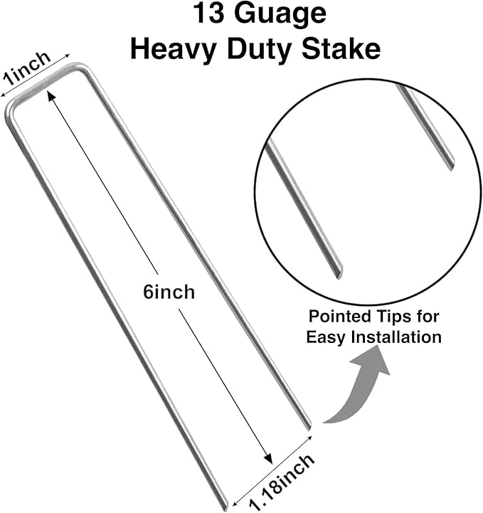Landscape Pins (50 Count) - Galvanized Heavy-Duty Sod Pins Anti-Rust Fence Stakes for Weed Barrier Fabric, Ground Cover, Irrigation Tubing, 13 Gauge, 50 Pcs