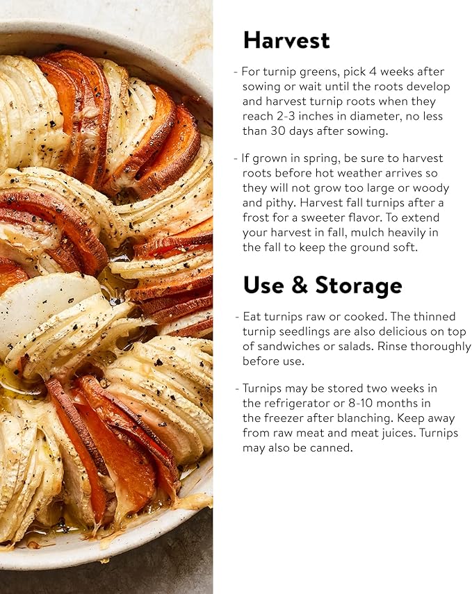 - A timeless Heirloom Turnip variety, with Sweet and tender White roots