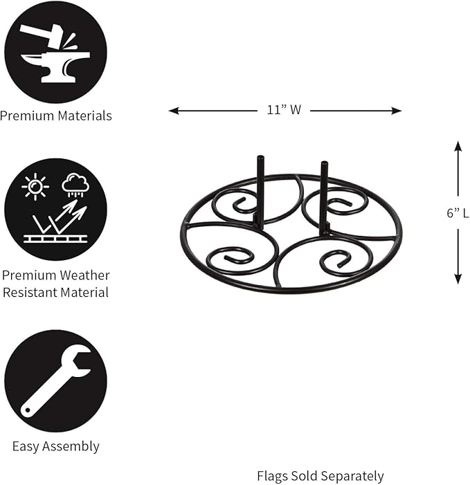 Evergreen Flag Metal Elegant Scroll Stand Base | Sturdy 2 lbs Solid Steel | Black | Designed for Garden Flag Stands | 11 Inches Wide x 6 Inches High | Outdoor American Flags and Seasonal Holiday Decor