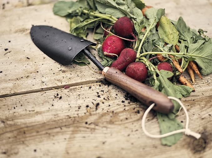 Barebones Spade Hand Trowel - Gardening Hand Tools - Stainless Steel Spade Shovel - Premium Quality Garden Spade - Japanese Garden Tool - Multipurpose Tool (Black/Walnut)