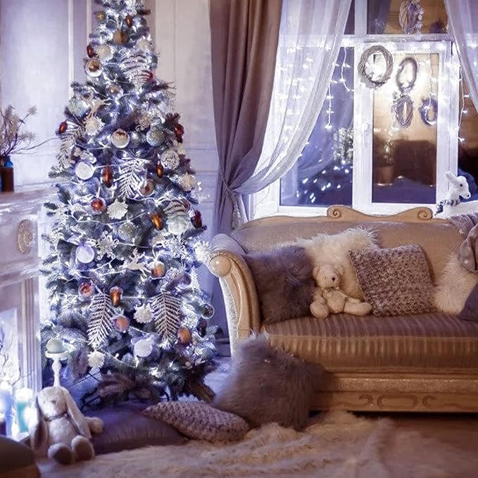 - 【Bright & Soft White Christmas lights】 Our LED Christmas lights have 200 white LED lights. The white string lights with plug design greatly improves the stability of the bulb brightness. These lights are very clear, soft and not dazzling, adding a classic and charming light to your home and festival decoration. Light up the night with a soft white glow and perfect to add ambience.