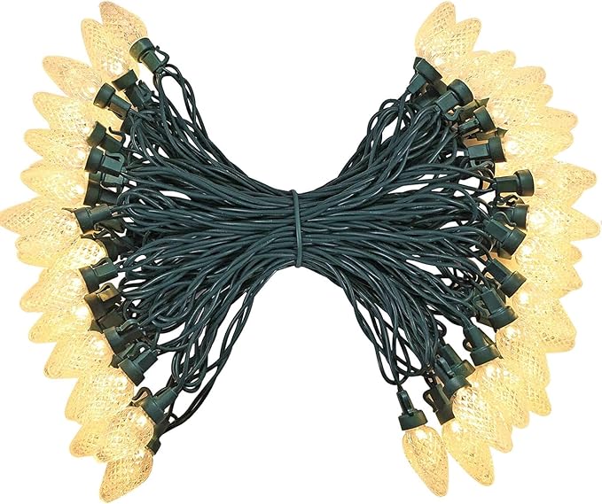 - 【Super Bright & Energy Saving】: 50 count C7 LEDs, brighter than traditional incandescent string lights, flicker-free lighting. 4.8w rated watts, low consumption, Up to 90% energy saving; Excellent heat dissipation and Bulbs are Cool to the Touch when Lit, long lifespan up to 50,000 hours