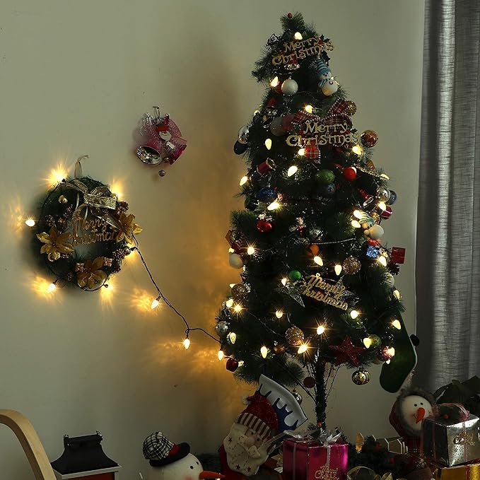 DEWENWILS C7 Warm White Christmas Lights, 33.3ft 50 LED String Lights Waterproof, Indoor/Outdoor Decorations for Xmas Tree, Patio, Garden, Yard, Porch, Green Wire, UL Listed
