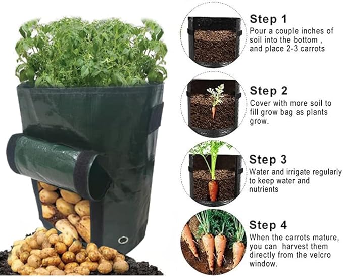 Potato Grow Bags,(5 Pack 10 Gallon) Garden Vegetables Growing Planter with Handles and Access Flap for Planting Potato Carrot Onion Taro Radish Peanut,