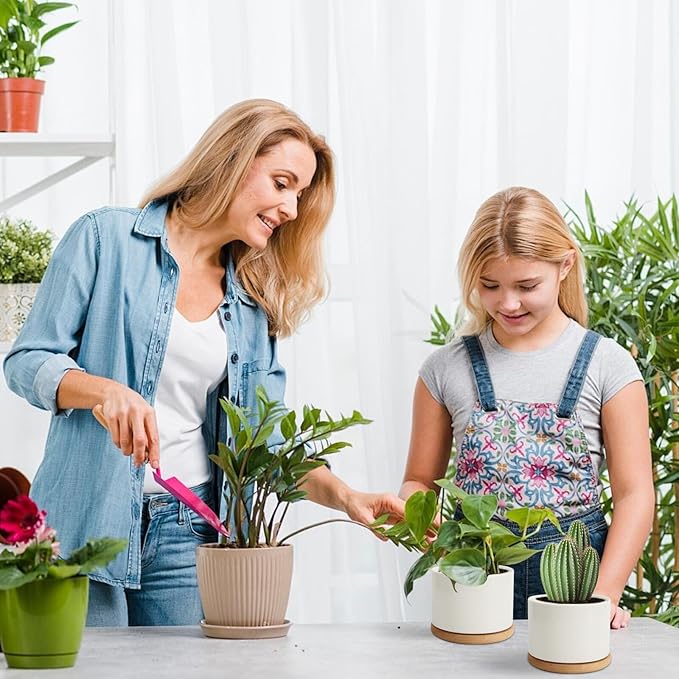 - Stylish and Functional: The clean white ceramic design offers a modern, minimalist look, while the bamboo trays add a warm, natural element. These planters seamlessly blend with any home or office decor.