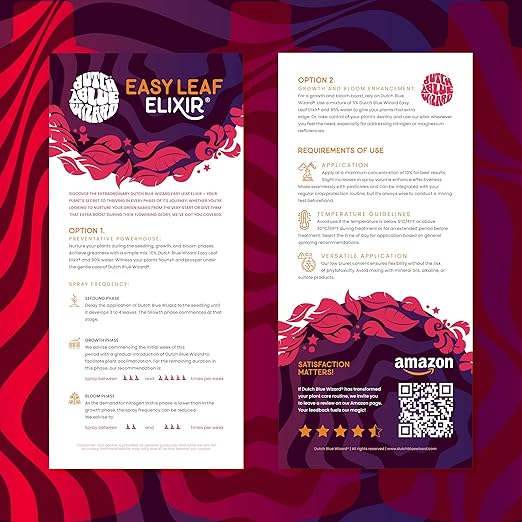 - [ ANCIENT MAGIC IN EVERY DROP ]: Unleash the power of time-honored wisdom with Dutch Blue Wizard Liquid Easy Leaf Elixir. Crafted by blending ancient techniques with modern science, this elixir provides plants with the nourishment they need to thrive. Each drop is enriched with essential nutrients, delivering unparalleled support for vibrant growth, strong roots, and resilient plants. Elevate your gardening experience with a premium formula trusted for consistent results. Perfect for creating lush greenery and flourishing harvests.