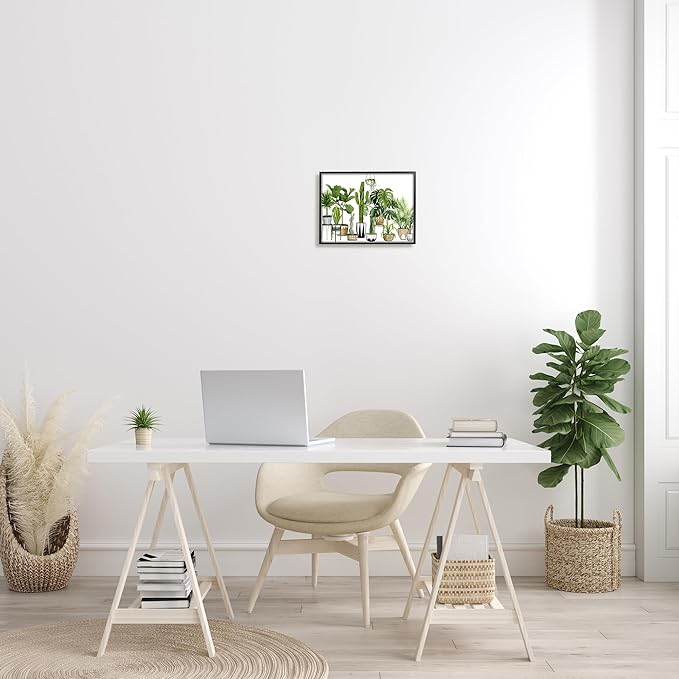 Stupell Industries Boho Plant Scene with Cacti and Succulents in Geometric Pots Watercolor Framed Giclee Art Design By Artist Grace Popp