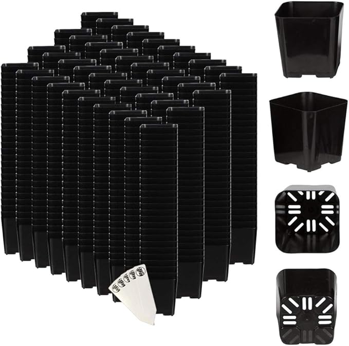 The Hydroponic City Black Square Flower Pots for Starting Seedlings, Succulents, or Cacti - 2" x 2", Pack of 1000 + THCity Stakes