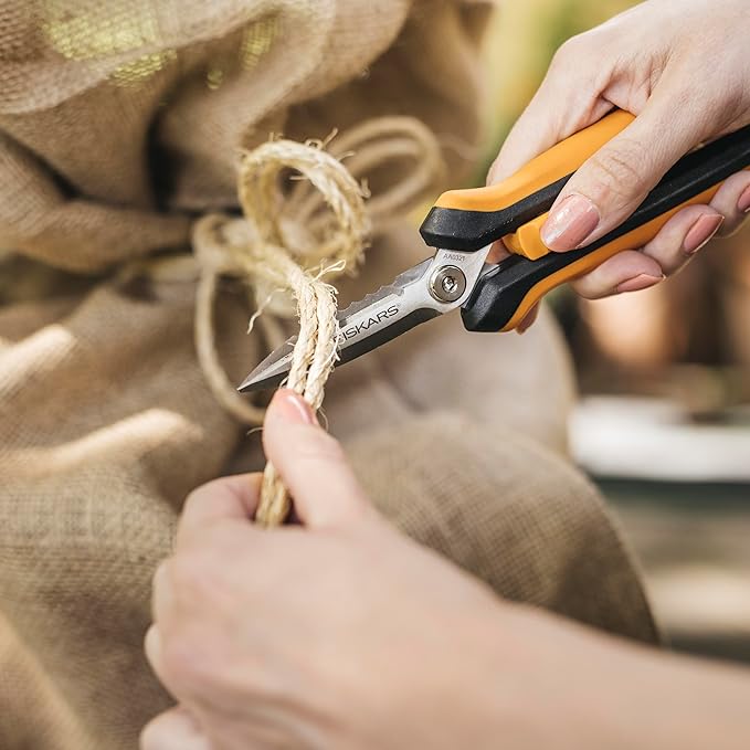 Fiskars Pruning Shears for Gardening, Multipurpose 8" Garden Shears with Sheath and SoftGrip Handle, Great for cutting Nursery Pots, Bags, and Wire