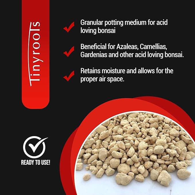 Kanuma Bonsai Soil by Tinyroots- 2 Quarts, Used with Acid Loving Bonsai Trees, Camellias, Gardenias, Azaleas, 5 Millimeter