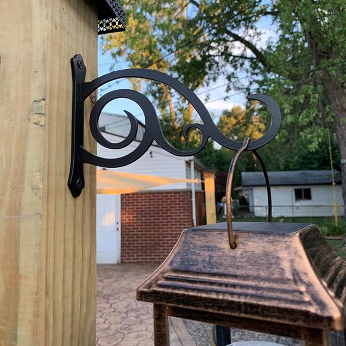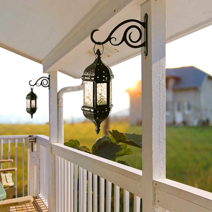 2 Pcs 8-Inch Outdoor Decorative Wall Hanging Lantern Plant Hooks, Iron Wall Hangers for Hummingbird Feeder Planter, Black