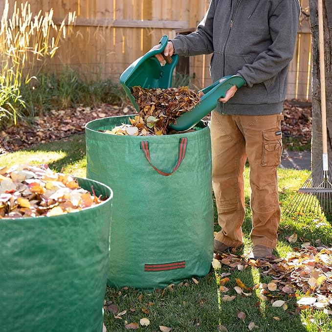- WE HEARD YOU. You told us our leaf scoops were too thin and we upgraded it V2.0. With thicker, reinforced materials, our leaf scoops are more durable to handle heavier loads. We even made the scoops more compact for easier storage. We all know the shed and garage and getting packed with too much stuff. Get easier leaf raking and scooping, without having to bend over as deep. Quick and easy, simply grab and drop into your paper lawn and refuse trash bags.