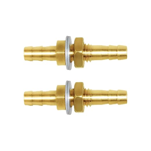 Joywayus 2pcs 1/4'' Hose Barb Thru-Bulk Head Hex Union Brass Fitting with Flat Washer Gasket Water/Fuel/Air