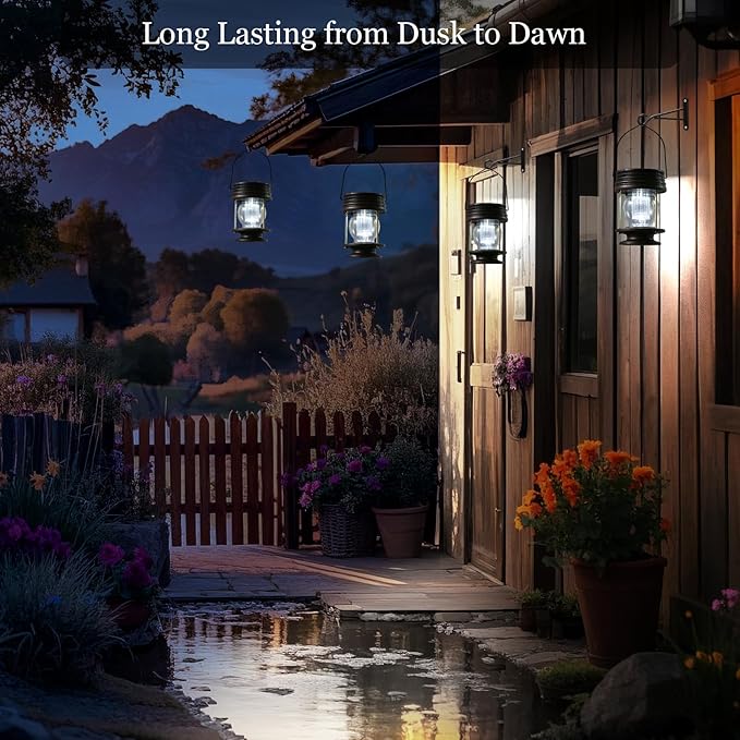 - 【TWO PLACEMENT WAYS】-- Hanging solar lights, can be hung on porches, trees, pergolas with the hanging ring; Solar table lamp, rested on a tabletop, ledge, beach, pavilion. Warm Light filtered through the lampshade and cast a beautiful pattern of the ground. Soft light creates a romantic atmosphere for your garden or pavilion.