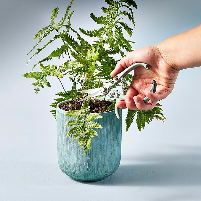 Modern Sprout Pruning Shears for Gardening, Herb Snips, Flower Cutting Scissors, Indoor Plant Shears, Lightweight, Ergonomic, Carbon Steel Blade, Easy-Lock Safety-Catch, Aesthetic, Green, Micro-tip