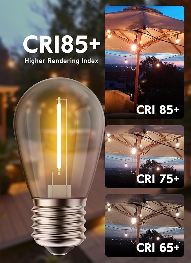 - Energy saving string lights replacement bulbs: S14 LED bulbs have a candelabra base that fits into either an E26 or E27 screw base. Each piece 120V 1W equivalent to 11 watt traditional incandescent bulbs. Waterproof edison led bulbs for indoor and outdoor use