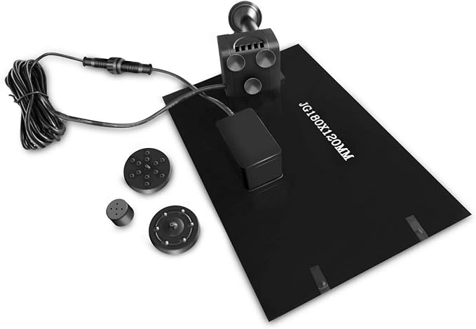 - ⛲ CONVENIENT & FUNCTIONAL WITH 4 KINDS OF SPRAY HEADS - Pump will start working in 3 seconds once exposed to sufficient sunlight. It comes with fitting accessories and 4 types of sprinkler heads for different water flows and water heights to prevent water splashing. Max water height: 70cm (27.6inch), Cord Length: 9.5Ft. Max water area: 150cm (59 inch). The height of water depends on the strength of the sunlight.