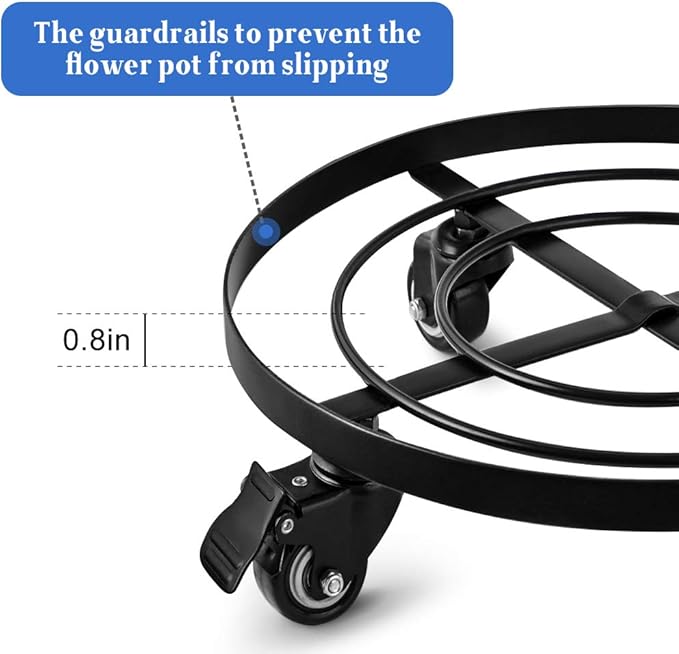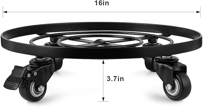 - SIZE & DURABLE POWDER COATED WELDED MATERIAL: Amagabeli metal flower pot caddy is 16 inch in diameter. This round iron planter stand is big enough to hold large and heavy planters or flower pot and moving around your home freely. The iron potted plant stand with wheels is made of rustproof and weather resistant powder coated metal material. Round flower pot rack on rollers is welded with high quality iron that makes this plant saucer with wheels can bear heavier plants pots or other planter.