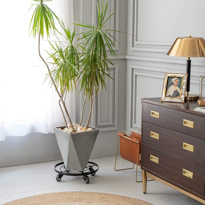 - CUSTOMER CARE: This corner plant stand indoor, floor plant saucer with wheels can be widely used indoor and outdoor for moving garden pots, heavy plants, large potted trees, large vases, whiskey barrels, or heavy trash cans and can protect your floor from being worn out. We are dedicated to provide premium products for you and offer impeccable customer care to you. Don’t wait any longer and just enjoy your ideal products today! NOTE: Pots for demonstration purpose only, not included.
