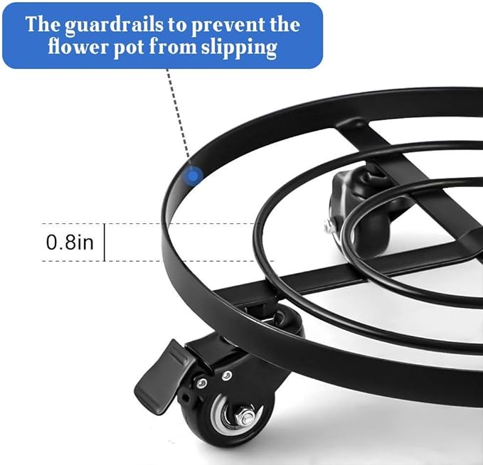 - No Assembly Required & Lockable:4 solid rubber casters come fully assembled. Casters rolls smothly, move your heavy plants with little effort, relocate plants for hurricanes sunlights weather. and one wheels has brake can be locked to keep the caddy in place for security. This plant caddy with a lip around the outer rim so that plants won't slide off when you're moving them.