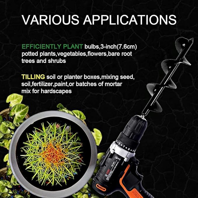 - VARIOUS APPLICATIONS OF POST HOLE DIGGER: This auger spiral hole drill is the professional landscapers’ choice for dramatically increased efficiency when plant hole digger planting bulbs, potted plants, vegetables, flowers, bare root trees and shrubs, tilling soil or planter boxes, mixing seed, soil, paint, or batches of mortar mix. Simplify drilling tasks such as digging weeds roots, taking soil samples, boring plant holes or erecting fences